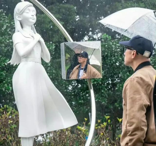 在九故十亲和广漠媒体记者眼前,具俊晔亲手为雕像揭幕,他用雨伞捅来捅去,挑开了盖在上头的幕布。