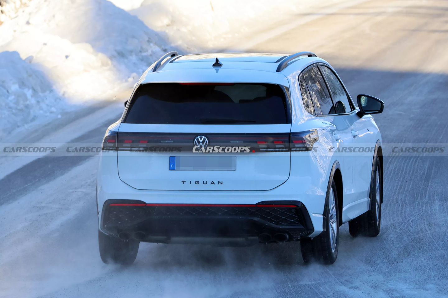 外不雅方面,这辆测试车委果处于都备无伪装景色,合座研讨沿用现金 Tiguan R-Line 决策,最权贵的特征位于车尾给与 R 系列标记性的四出排气管,以及包围在周围的亮玄色后扩散器隐秘件。