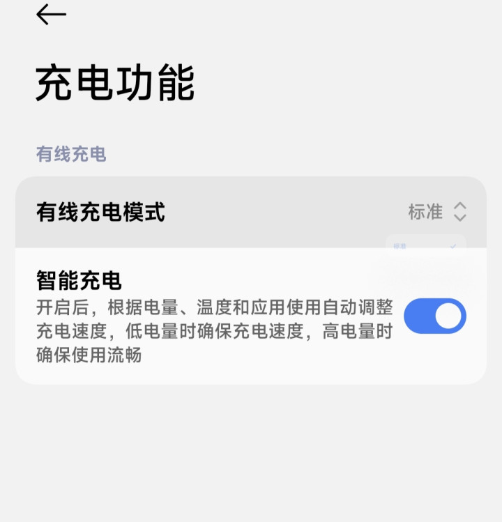 多的这个充电功能,内部皆还有2个选项:一个有线充电阵势,九游会app一个灵巧充电。有线充电阵势内部有2个遴荐,一个是圭表阵势,另一个极速阵势。难怪我刚买来就充电一个半小时,正本开关在这里,默许树立了圭表阵势和灵巧充电。选智能充电,亚搏它会驱散电量、温度和诈欺而自动退换速率,这么就影响了充电速率,充电速率要快,就要勾选阿谁极速阵势。