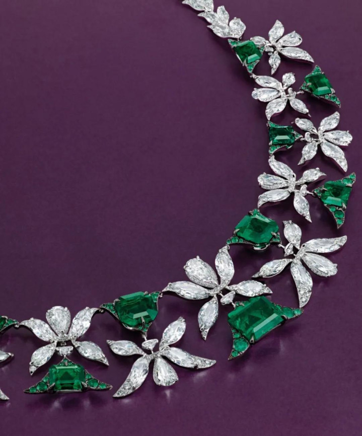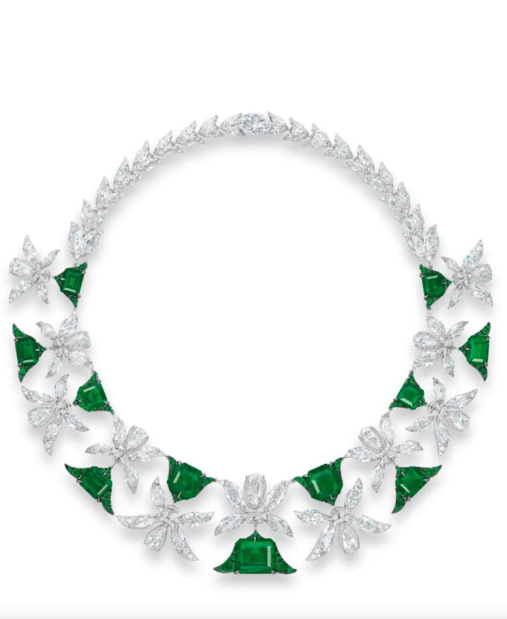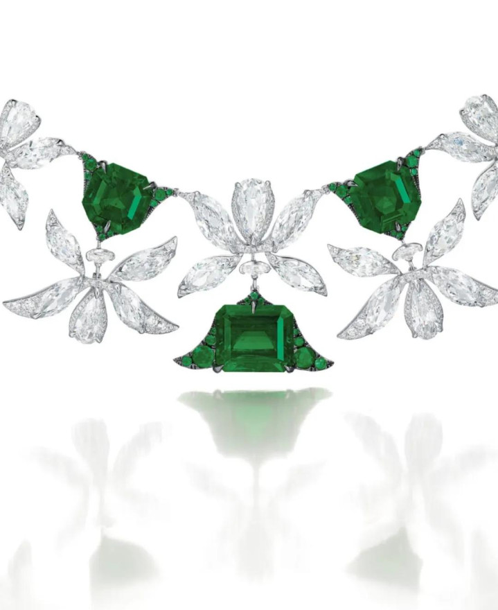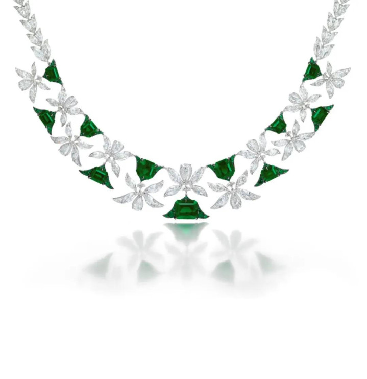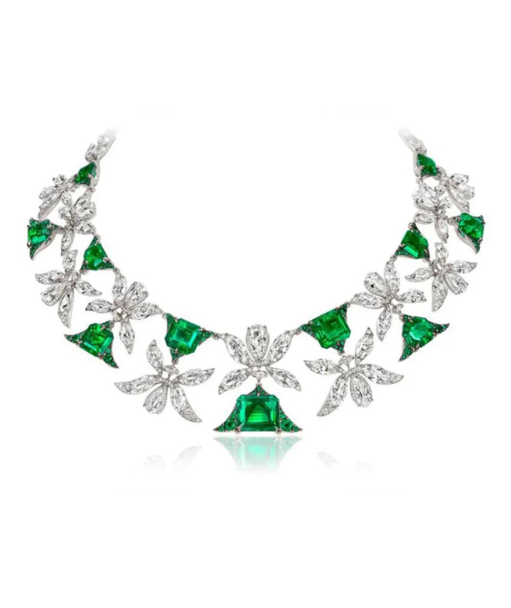 这条由珠宝艺术家Edmond Chin为Boghossian创作的“Palmette”项链,等于一个对于“不行能”的实证。它的中枢,是11颗矩形切割的哥伦比亚祖母绿。这不单是意味着数目,更意味着一场近乎及其的“匹配游戏”。