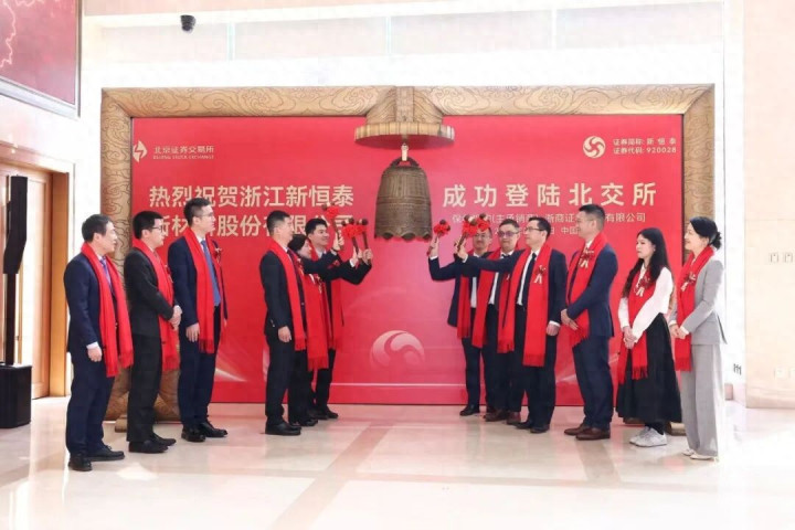 3月20日,浙江新恒泰新材料股份有限公司(股票简称:新恒泰,股票代码:920028)认真在北京证券交游所挂牌上市,公司见效迈入本钱阛阓发展的全新阶段。新恒泰本次刊行价9.40元/股,刊行市盈率14.99倍,公司开盘即涨超120%,狂放当天收盘,报22.70元/股,涨幅高达141.49%,显泄漏阛阓对公司的招供和信心。