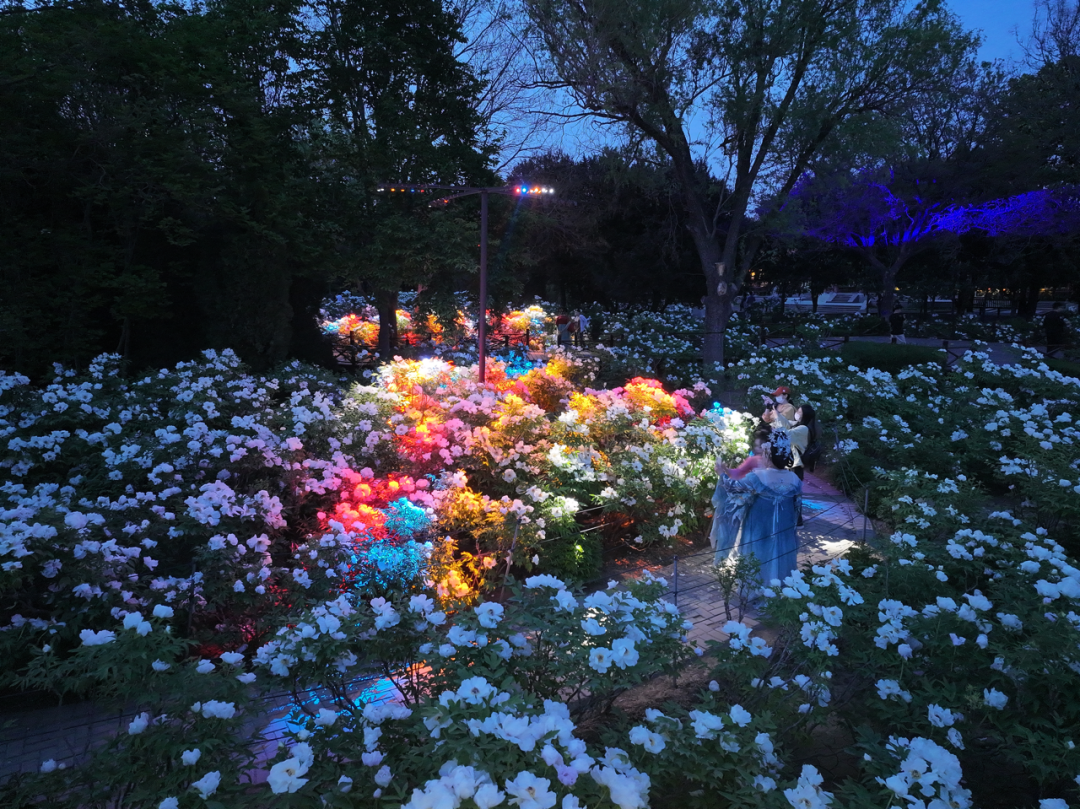 算作京郊首座可夜赏牡丹的公园,花展要点打造主题亮化景不雅,解锁牡丹夜间不雅赏新体验,通过多档次灯光布局与“福马”花灯联动收尾昼赏国色天香,夜不雅灯影花海的全天候千里浸式体验,既延迟赏花时长也彰显特有的夜赏上风。除了美丽多姿的花朵,公园还推出NPC千里浸式巡游、AI互动体验、国风市集、非遗展示等内容,丰富旅客的赏花体验。