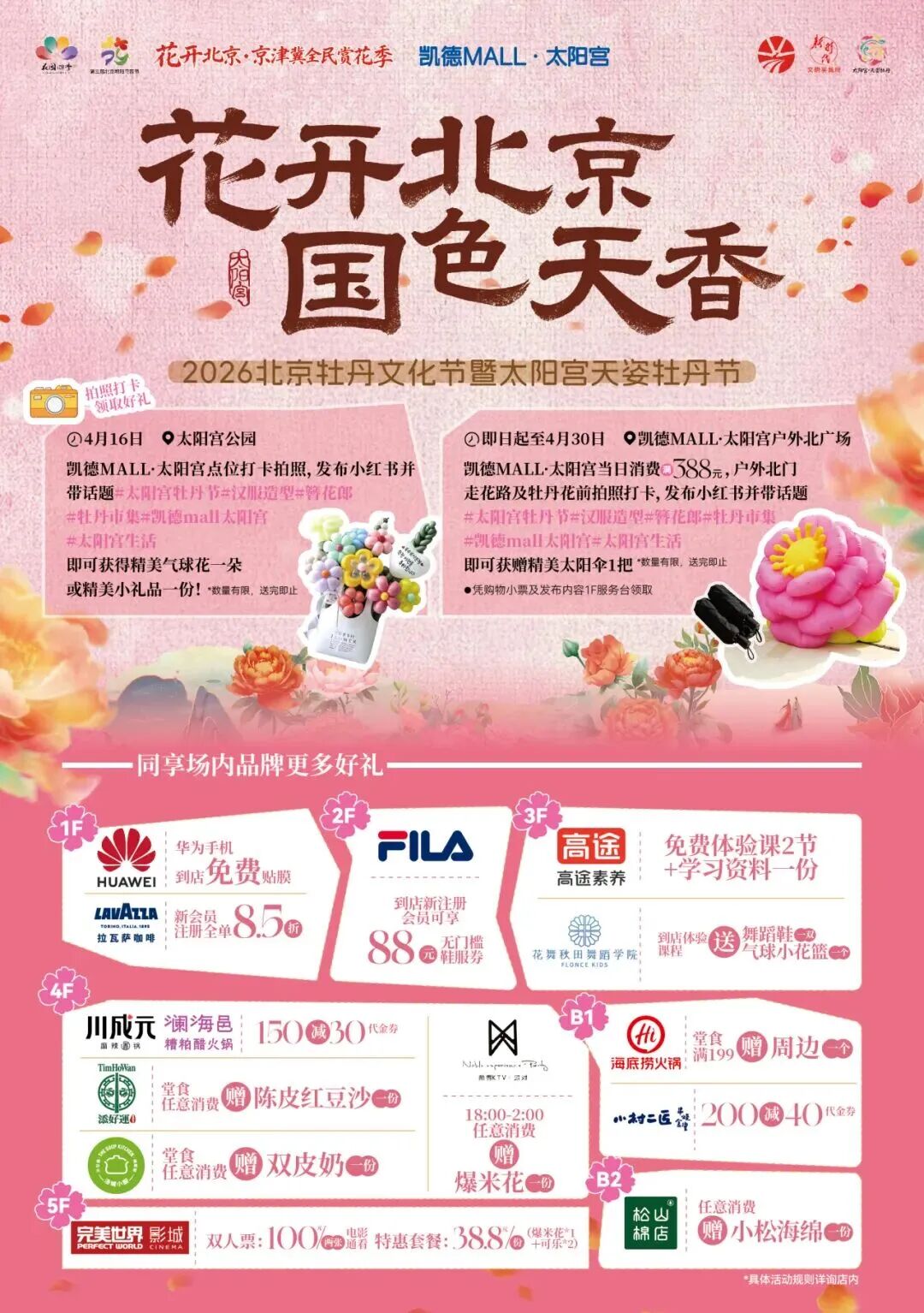 本次太阳宫天姿牡丹节,结伙凯德MALL·太阳宫店推出打卡领好礼步履。赏花之余,达到特定条目即可领取限量春日小礼,让这场赏花之旅多一份惊喜与庆典感,米乐app下载从公园到市场,一齐花香相伴,快来平庸解锁“赏花+逛吃”的一站式春日体验。