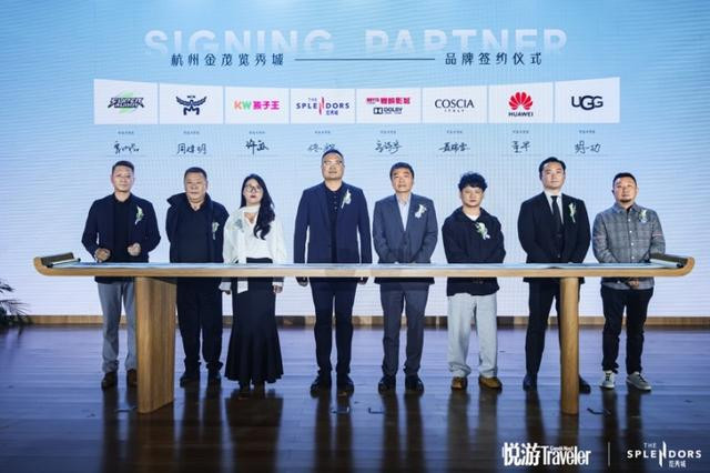 随后的品牌签约庆典成为整场行径的热潮之一。十四家品牌代表顺次登台,以一枚枚定制图章代替传统署名笔,在山水见证下完成签约。