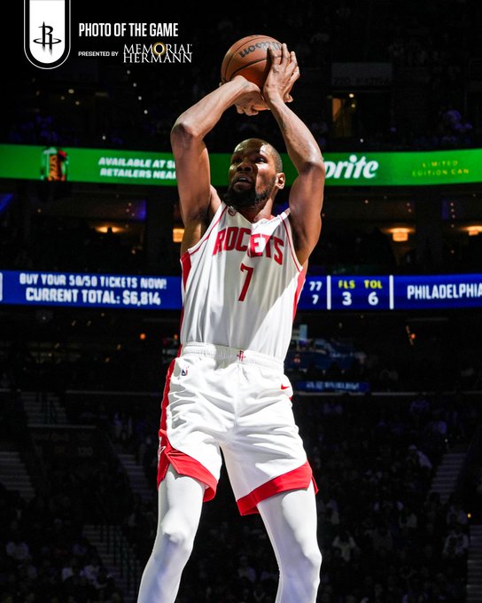 赛后,火箭共享杜兰特赛场图集:凯文-杜兰特今晚在费城砍下36分。