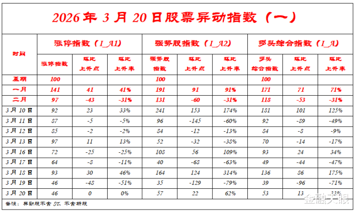 一、异动指数全景:涨停指数握平,强势股指数回暖