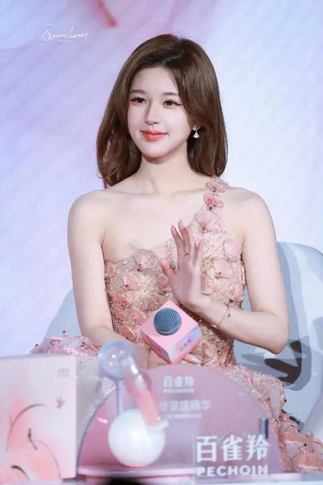 4月18日,赵露想亮相上海一品牌直播看成,孤单淡粉色PhanHuy2026春夏高定单肩花瓣长裙惊艳全场,立体花瓣与细闪钻饰加合手,搭配微卷棕发与清透淡妆,生图现象被网友盛赞“公主感拉满”。