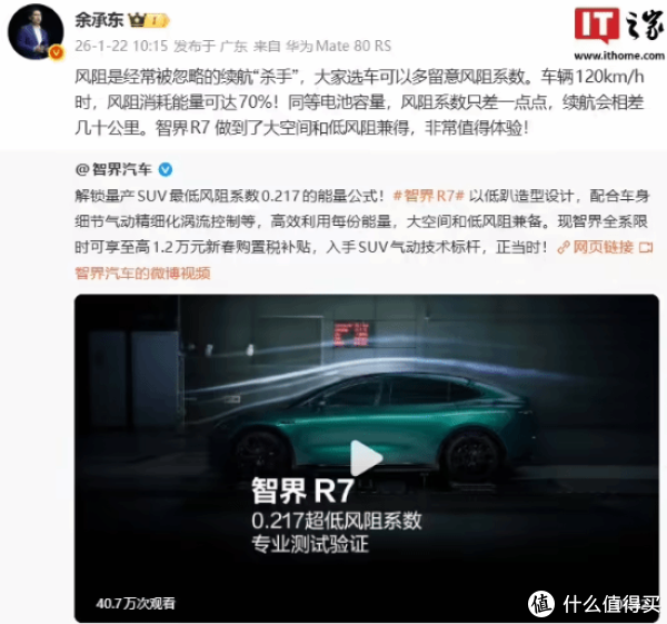 华为的余承东又出来唠汽车圈的干货了,此次说的事儿,臆想好多开车的东谈主齐没当回事——车辆跑120km/h的时间,风阻销耗的能量简直能占到70%!这话一听是不是懵了?平时只知谈开快了费油费电,总以为是车重或者发动机/电机功率不够,没思到藏在背后的“耗电大户”简直是看不见摸不着的风阻?