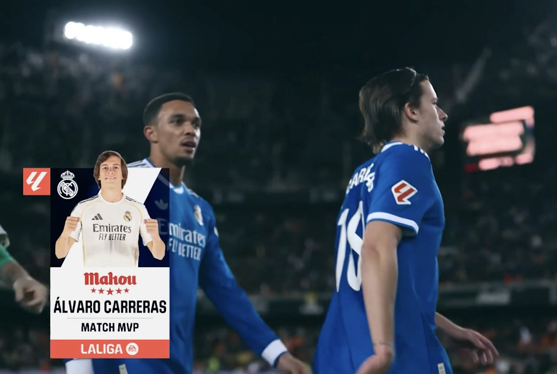 西甲第23轮,皇家马德里客场2-0打败瓦伦西亚,此役打入一球的皇马后卫卡雷拉斯当选西甲官方全场最好球员。