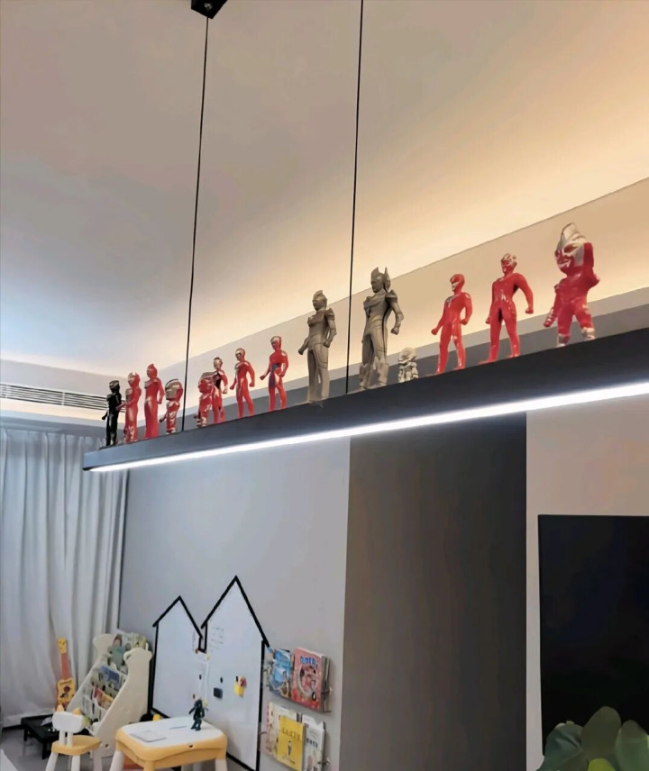 有网友共享:餐厅阿谁小边缘,是犬子最爱的地点,因为咱们把他的“奥特曼”玩物融入到了家居绸缪中,让这个空间充满了温馨的氛围。