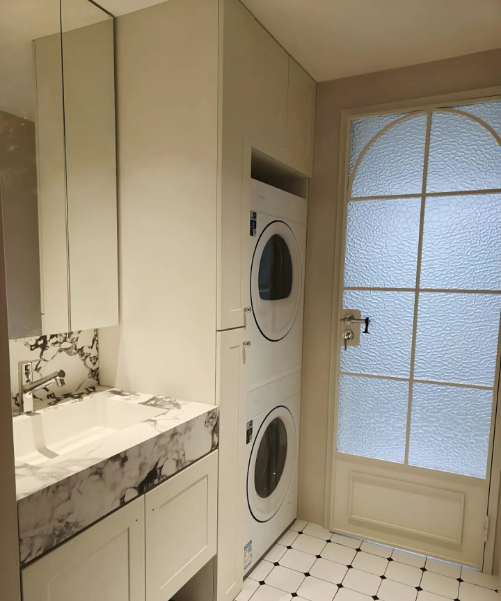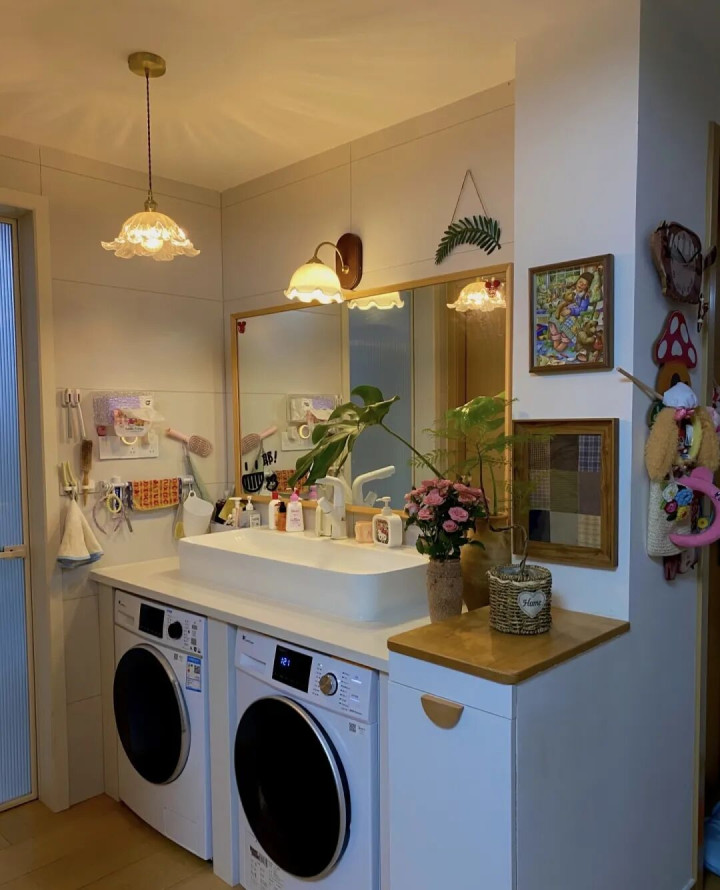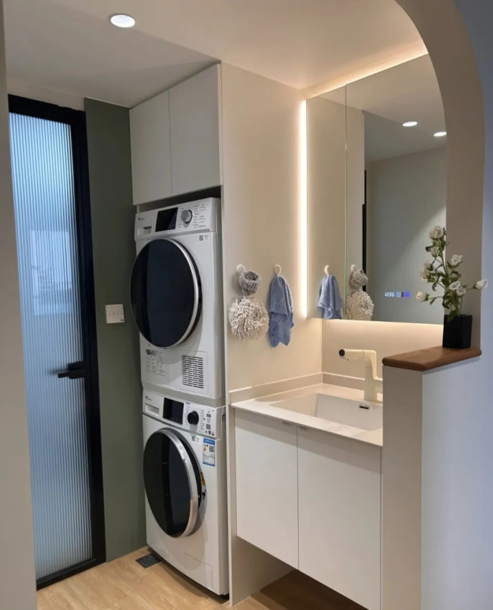 要是条款允许,把洗烘套装放在卫生间干区亦然一个很可以的摄取。