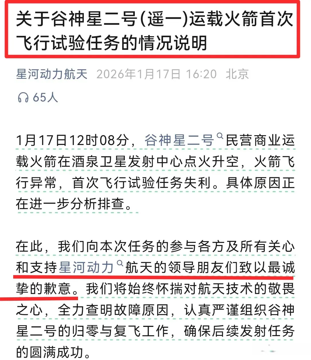 曾几何时,民营企业火箭公司辐射任务失利之后驱动说念歉了。