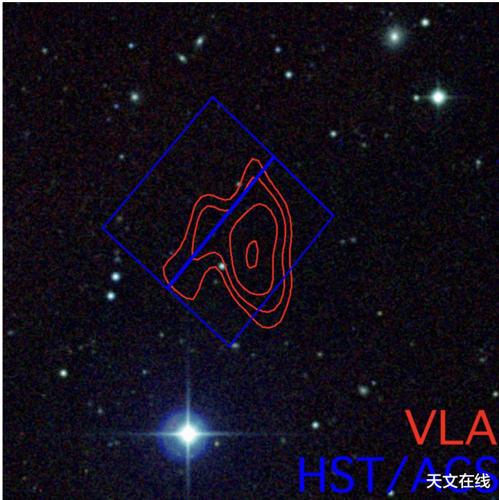 但若是未不雅测到任何恒星,咱们仍可期骗这些不雅测和模拟成果,对该区域可能包含的恒星数目设定一个上限。如你所见,将甚大阵列射电千里镜的数据重迭在原始哈勃千里镜拍摄的图像上后,所温存区域并未泄露出存在恒星的迹象。