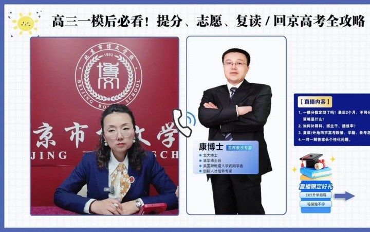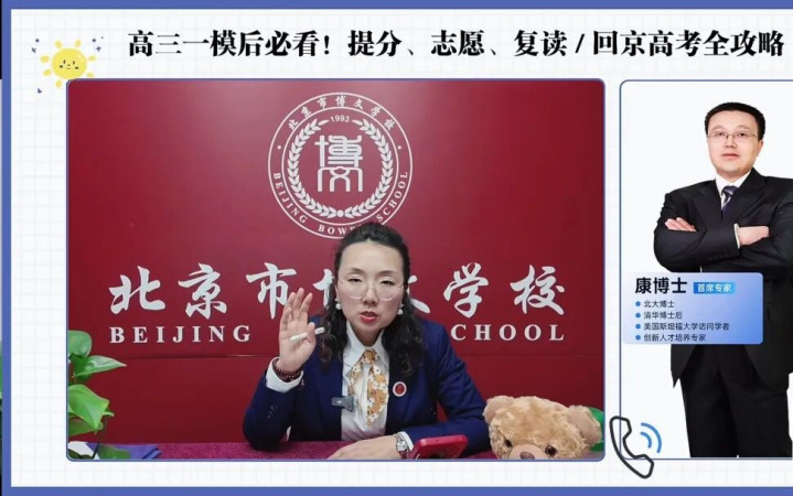 为此,咱们绝顶连线北京市博文体校首席教改巨匠康博士,围绕高三一模、后期备考、家长随同、北京高考主义等家长最温雅的问题,进行了一场专科、系统、接地气的直播共享。