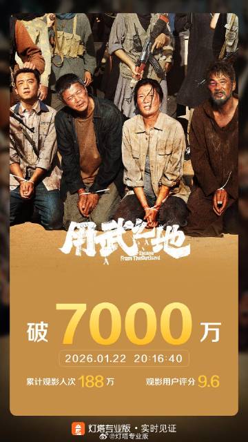 据灯塔专科版及时数据,截止1月22日20时16分,影片《用武之地》票房打破7000万。