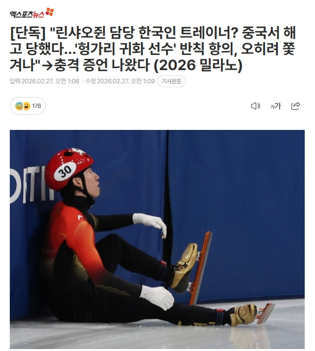 多位韩国冰上技俩相干东说念主士示意:“中国选手们里面进行过比赛,林孝埈曾受到匈牙利归化选手的搅扰而倒地,林孝埈的体能素质对此提议了热烈抗议,反而被解雇了。”