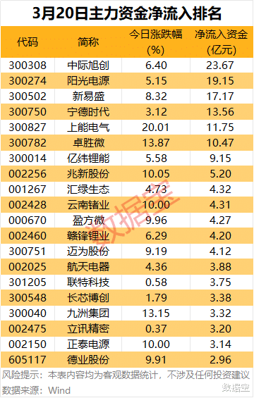 宁德时期本日股价大涨超3%,主力资金净流入超13亿元。锂电板板块大涨,石大捷华涨停,赣锋锂业冲击涨停。音书面上,交银外洋讲明指出,3月锂电产业链排产已全面回暖,重叠节后“以旧换新”战略落地和新车发布,全年锂电板需求向好。资金面上,亿纬锂能、赣锋锂业、正泰电源、石大捷华净流入资金居前。