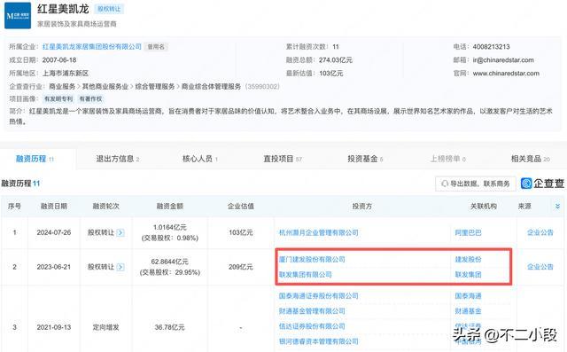 信息源来自企查查对于红星好意思凯龙的融资动态