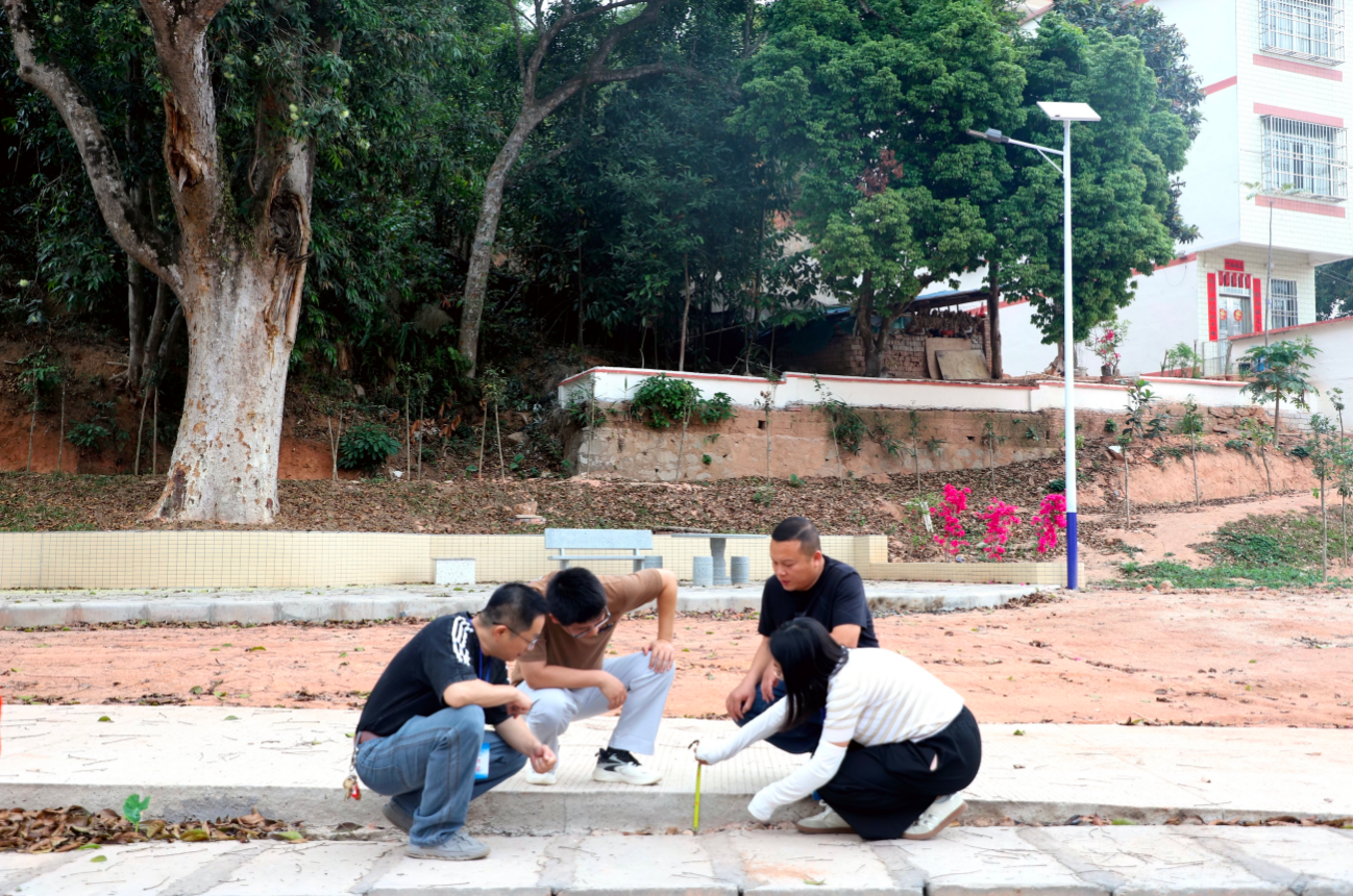 图为德庆县委巡察干部在新圩镇山咀村了解村说念硬底化建设权衡情况。(德庆县纪委监委供 陈冠宇 摄)
