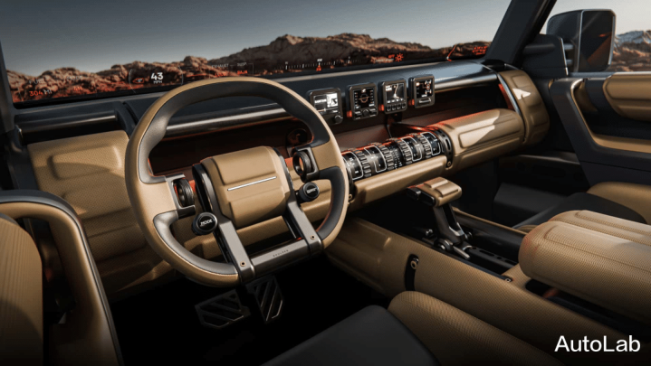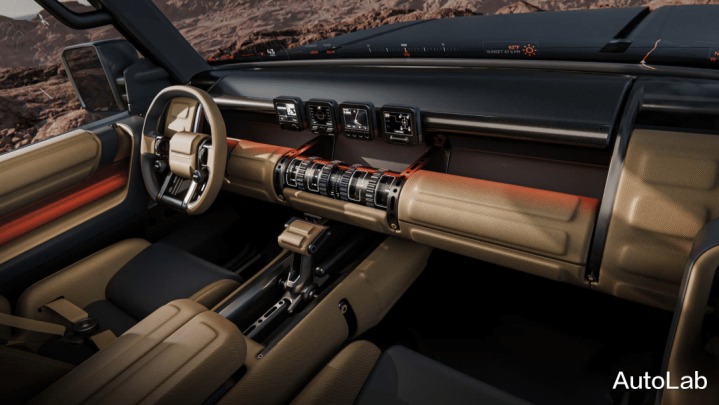 在本应叮嘱中控屏的区域,狡计了四块零丁的袖珍屏幕,分歧清晰车辆的能源系统、越野形式、空调系统和文娱系统。