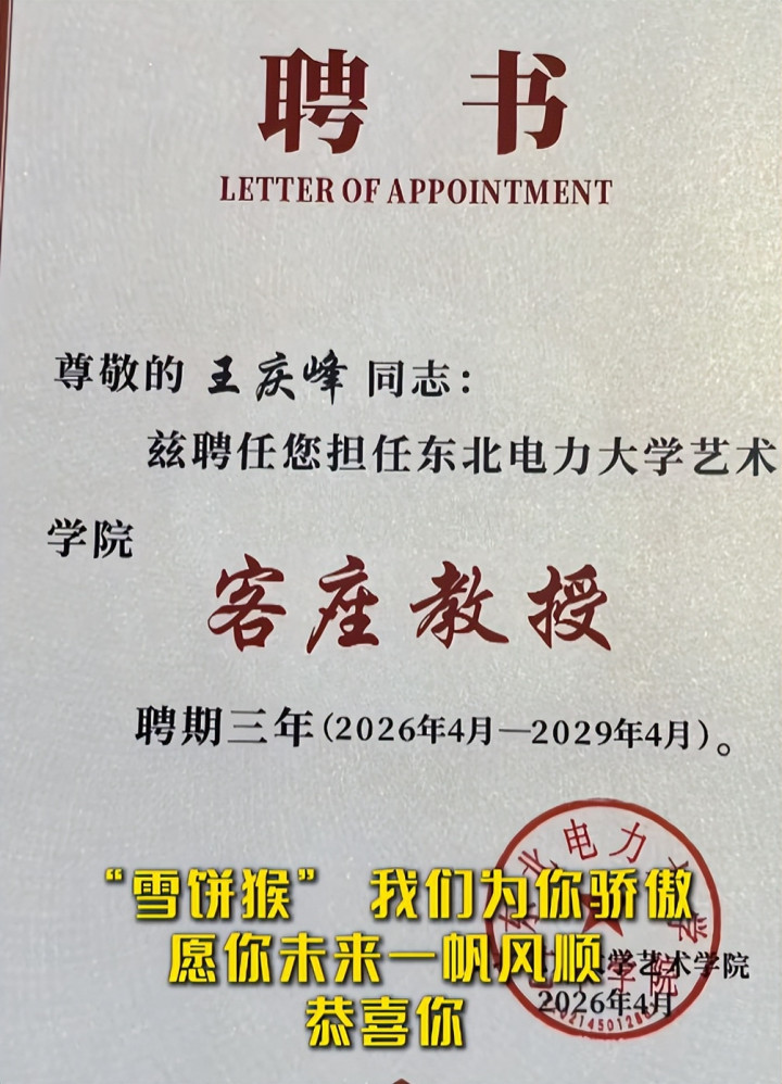 “雪饼猴”王铁柱,真名王庆峰,被东北电力大学特聘为客座西席,任期从本年4月到2029年4月,为期3年!