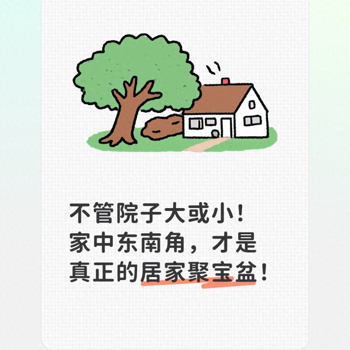 老一辈流传下来的居家糊口机灵,喜闻乐道,贴合日常居住规则。不论你家是自建大院、农村屋基地院落,仍是商品房自带小庭院、露台,东南角都是整套屋子最迫切的标的,亦然全国口中实打实的居家聚宝位。