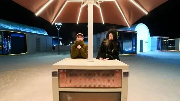 在园区西侧的冰雪温泉营地,这里不仅有能让东说念主卸下痛苦的暖汤温泉,更有藏在雪地里的好意思食惊喜——“星空暖锅”,鲜好意思的食材在铜锅中翻腾,搭配东北性情酸菜、冻豆腐,让旅客在感受冰雪的同期,味蕾被热辣鲜香包裹。而营地外的“室外暖炉”暖手亭更是景区的“贴心巧想”:金属材质的暖手台通电后抓续发烧,旅客只需将双手放上,瞬息便能死字寒意;暖手亭内还贴心配备了手机充电接口、济急创可贴、暖宝宝等物品,让每一个渺小需求都能被实时清闲。“带孩子游玩最怕他冻着、哭闹,没猜度这里连暖手、充电都商量到了,太安定了!”带着4岁女儿游玩的北京旅客王先生说,景区的工作比家东说念主想得还周详。
