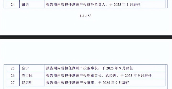 需要指出的是,控股鼓励湖州产投东谈主事改动通常时常,2021年1月,副总司理邵志强辞任;8月,副总司理任勇辞任;2022年1月,董事长赵怀君辞任;2023年4月,董事徐涛、王建强辞任;2025年1月,财务负责东谈主钮勇辞任;9月,董事长金宁、副董事长、总司理陈百民、董事赵启明辞任。