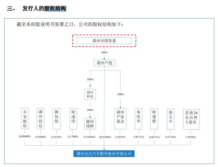控股鼓励表决权超六成。安达股份控股鼓励是湖州市产业投资发展集团有限公司(湖州产投),径直执股比例26.94%,通过控股子公司湖州绿桥及湖州产业基金辨别蜿蜒执有31.85%、2.57%的股份,共计执有公司61.35%的股份,实质戒指东谈主是湖州市国资委。
